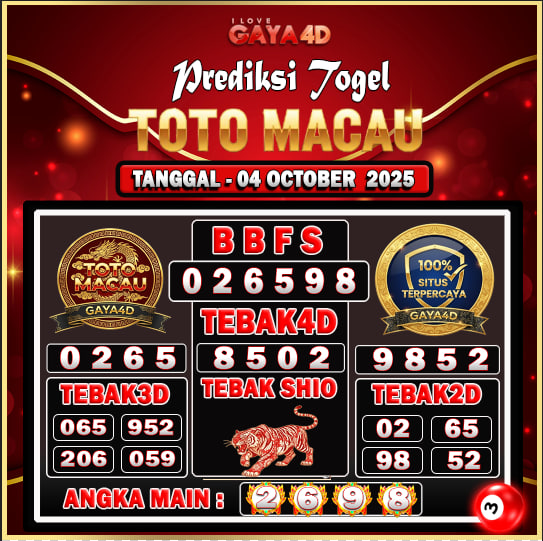 β TOTO MACAU 04 OCTOBER JAM 01:00 2025 β