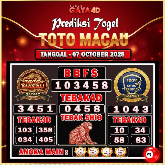 โ TOTO MACAU SELASA JAM 01:00 07 OCTOBER 2025 โ
