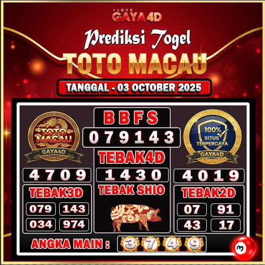 β TOTO MACAU 03 OCTOBER JAM 16:00 2025 β