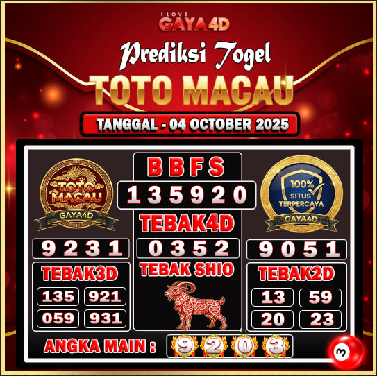 β TOTO MACAU 04 OCTOBER JAM 13:00 2025 β