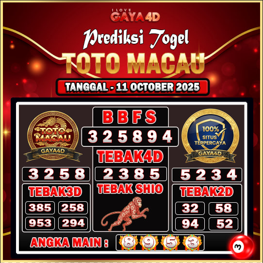 β TOTO MACAU SABTU JAM 16:00 11 OCTOBER 2025 β