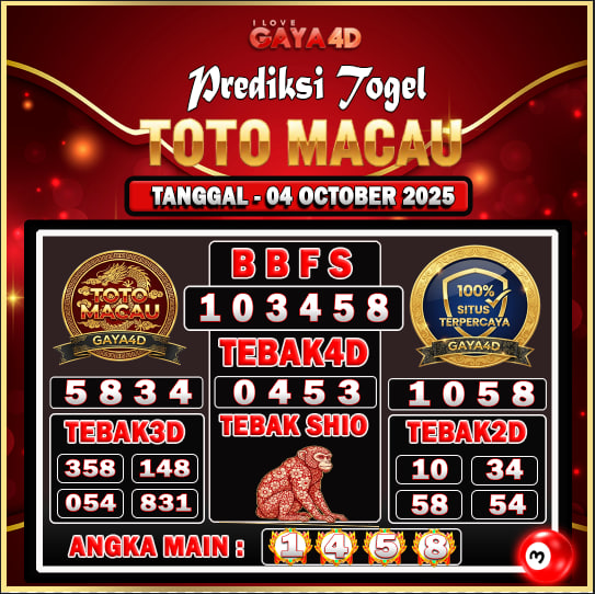 β TOTO MACAU 04 OCTOBER JAM 19:00 2025 β