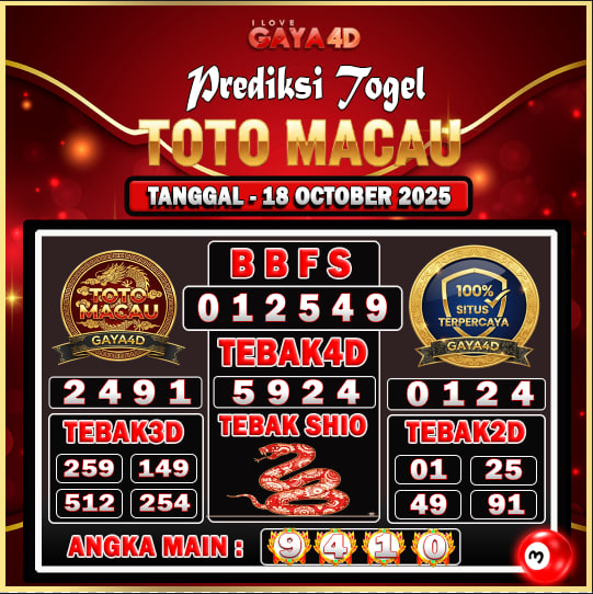 β TOTO MACAU SABTU JAM 01:00 18 OCTOBER 2025 β