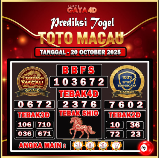 β TOTO MACAU JAM : 00:00 20 OCTOBER 2025 β