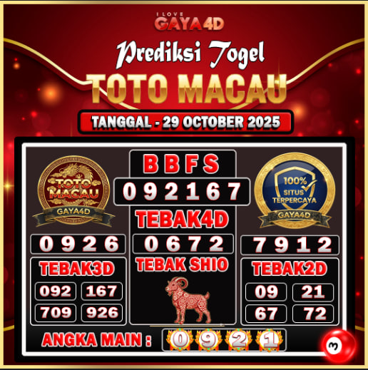 β TOTO MACAU JAM 01:00 29 OCTOBER 2025 β
